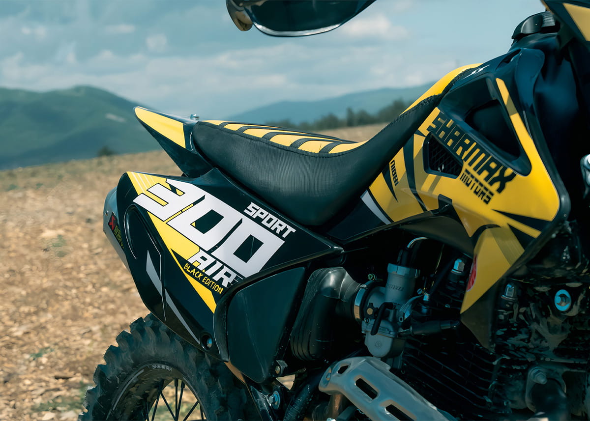 Sharmax Sport 300 Air Black Edition — лимитированная линейка эндуро байков Sharmax, созданная для ценителей сдержанного и стильного дизайна. Отзывчивый и быстрый, мотоцикл Sport 300 Air подарит ощущение превосходства на любой трассе. Премиальное качество и проверенные технологии легли в основу этой новинки 2024 года. Надёжная подвеска, новый двигатель с балансировочным валом усовершенствованная тормозная система — всё это поможет вам выйти на новый уровень в мире эндуро.